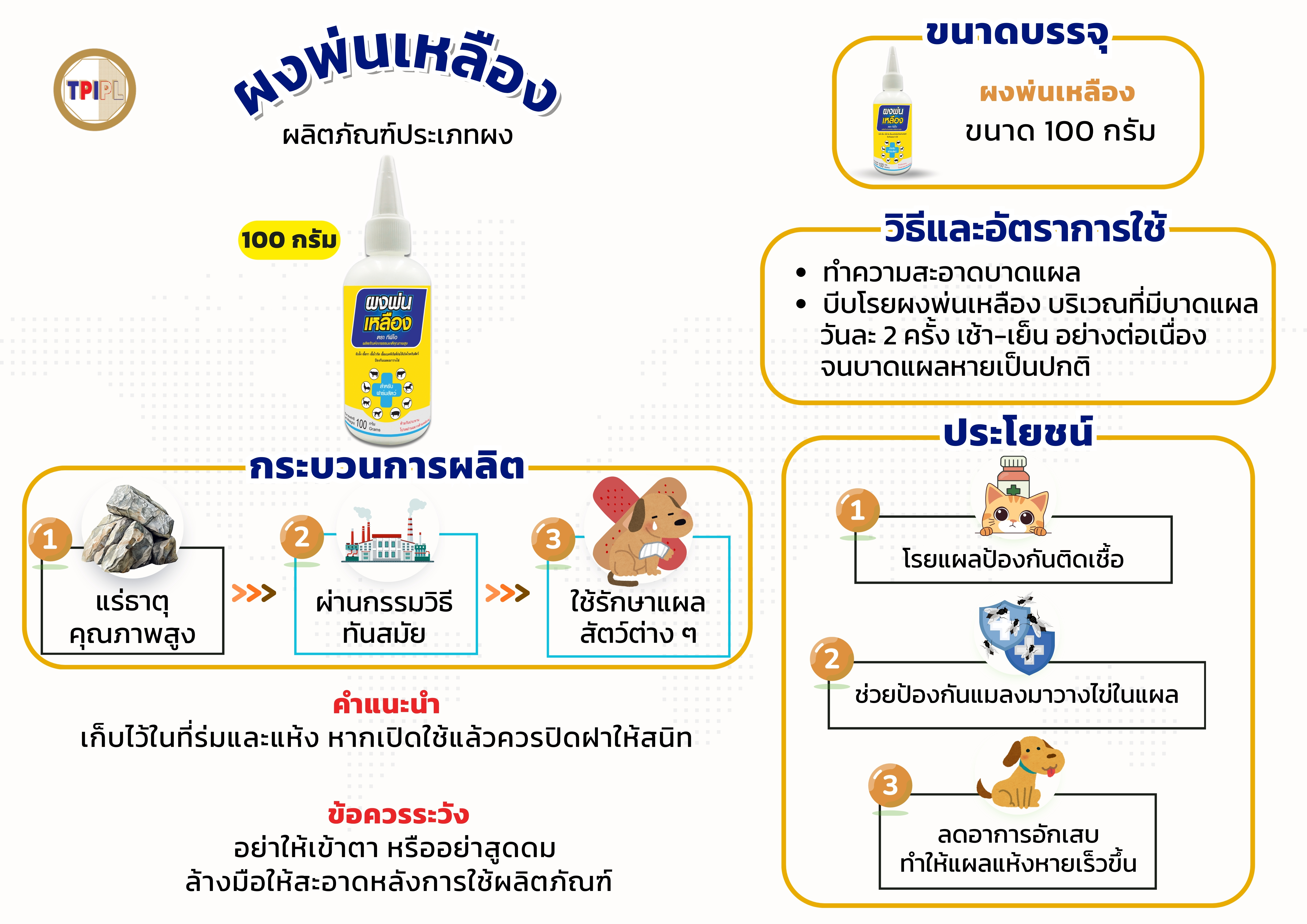 ผงพ่น เหลือง ทีพีไอ ขนาด 100 กรัม | TPI Yellow Powder (Antibacterial Substance for Livestock) 100 Gram