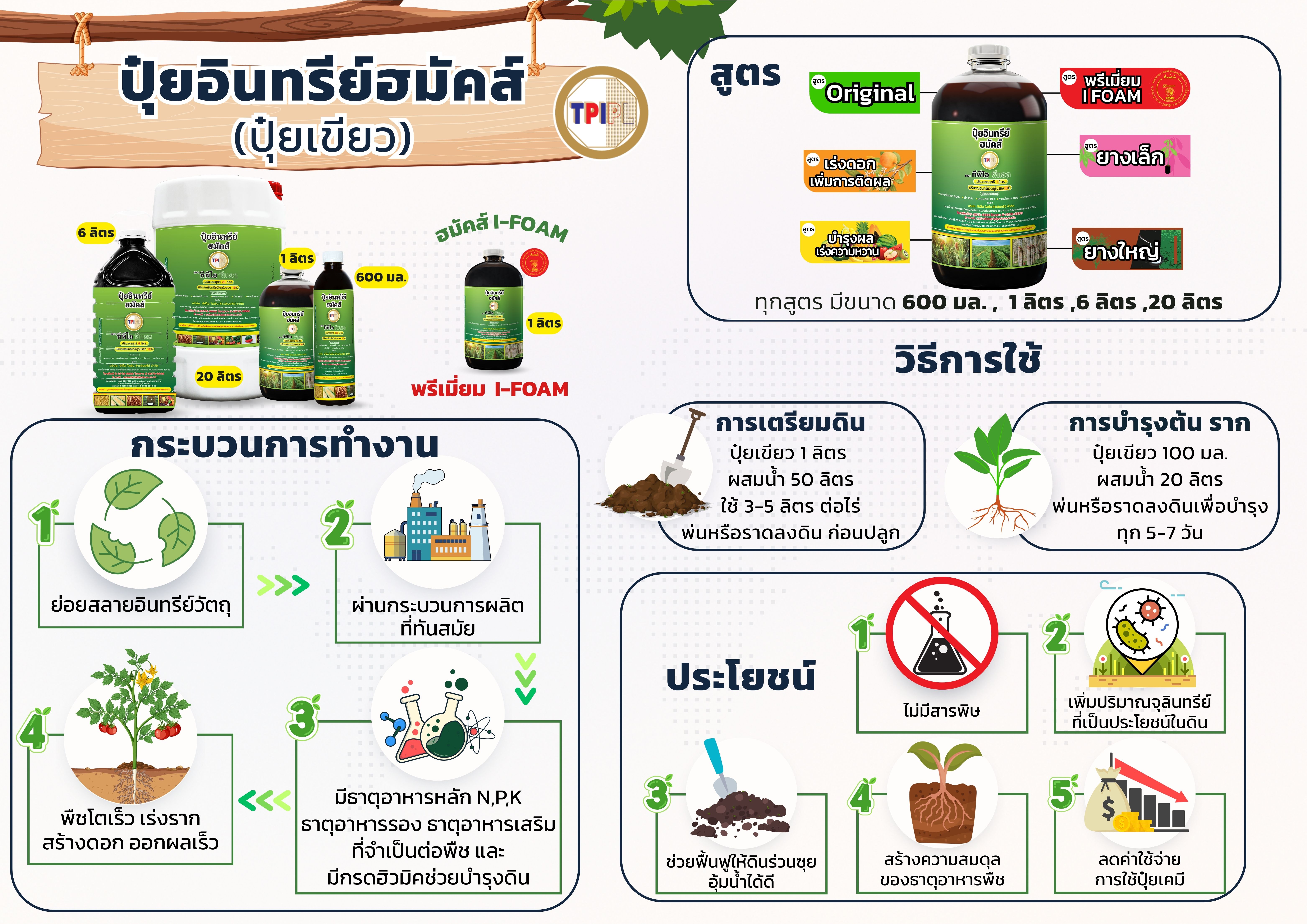 ปุ๋ยอินทรีย์ ฮมัคส์ ออแกนิค (ปุ๋ยเขียว) ทีพีไอ ถังขนาด 6 ลิตร | TPI Humics Organic (Green Liquid Fertilizer) 6 Liter