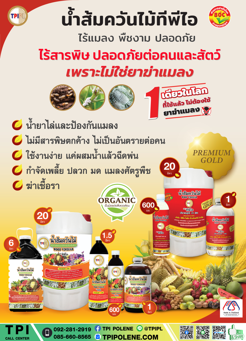 ทีพีไอ น้ำส้มควันไม้ ถังขนาด 20 ลิตร | TPI Wood Vinegar Organic Insect Repellant 20 Liter