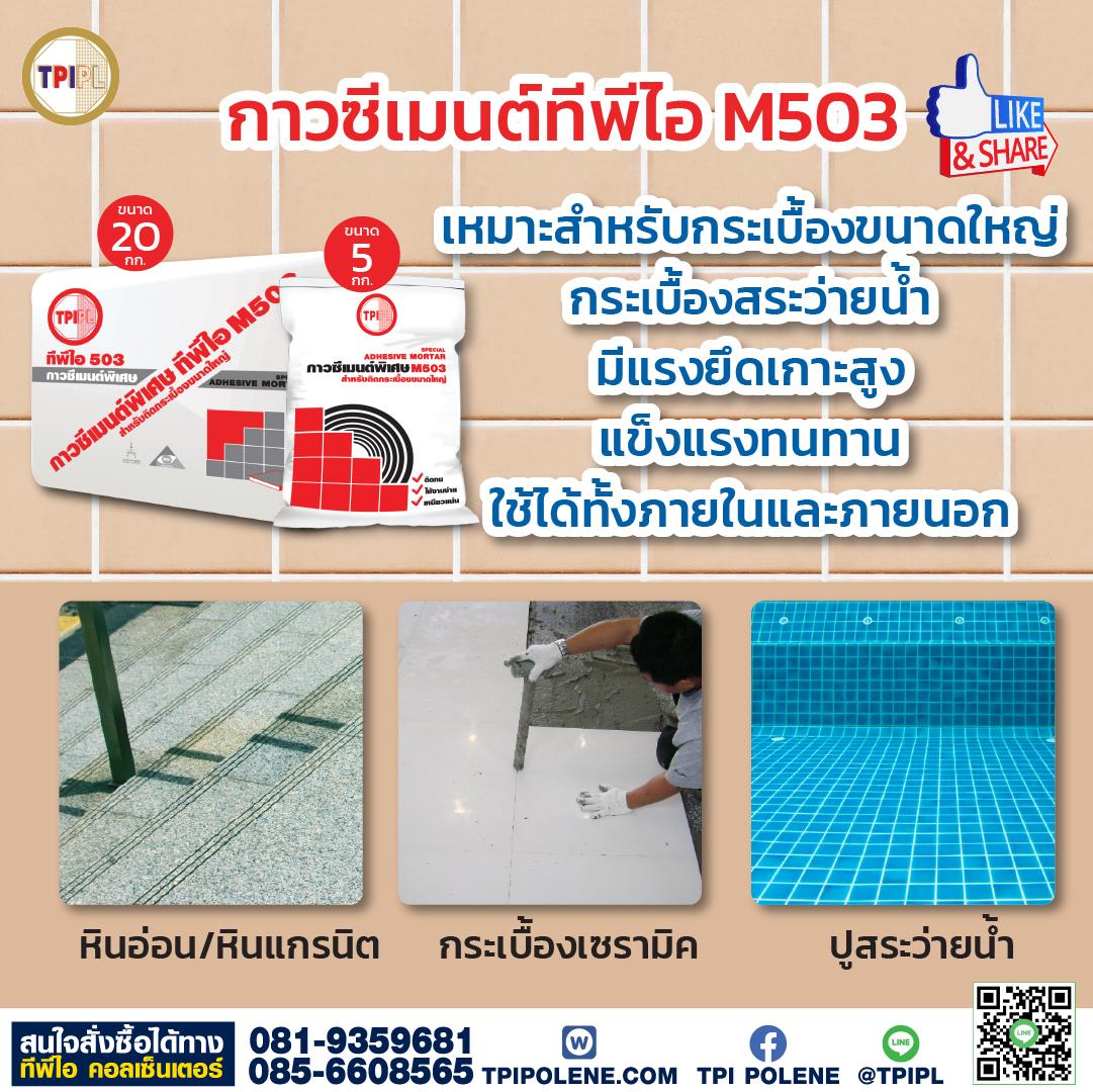 กาวซีเมนต์ชนิดพิเศษ (สำหรับติดกระเบื้องขนาดใหญ่ หินอ่อน หินแกรนิต และกระเบื้องเซรามิก ปูสระว่ายน้ำ) ทีพีไอ M503 ขนาด 20 กก. | TPI Extra High Bond Adhesive Mortar for Fixing Large Tiles (Marble Tiles and Swimming Pool Tiles) M503 20 kg