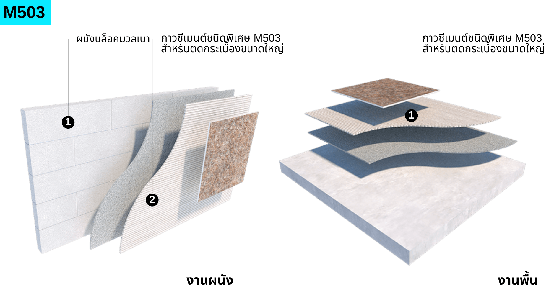 ใช้สำหรับงานปูกระเบื้อง ทั้งกระเบื้องปูพื้นหรือปูผนัง ทั้งภายใน และภายนอกอาคาร ใช้ได้กับกระเบื้องดินเผา กระเบื้องคอนกรีต หินอ่อนหรือ หินแกรนิต สามารถปูบนพื้นคอนกรีตผิวมันและปูสระว่ายน้ำได้ |